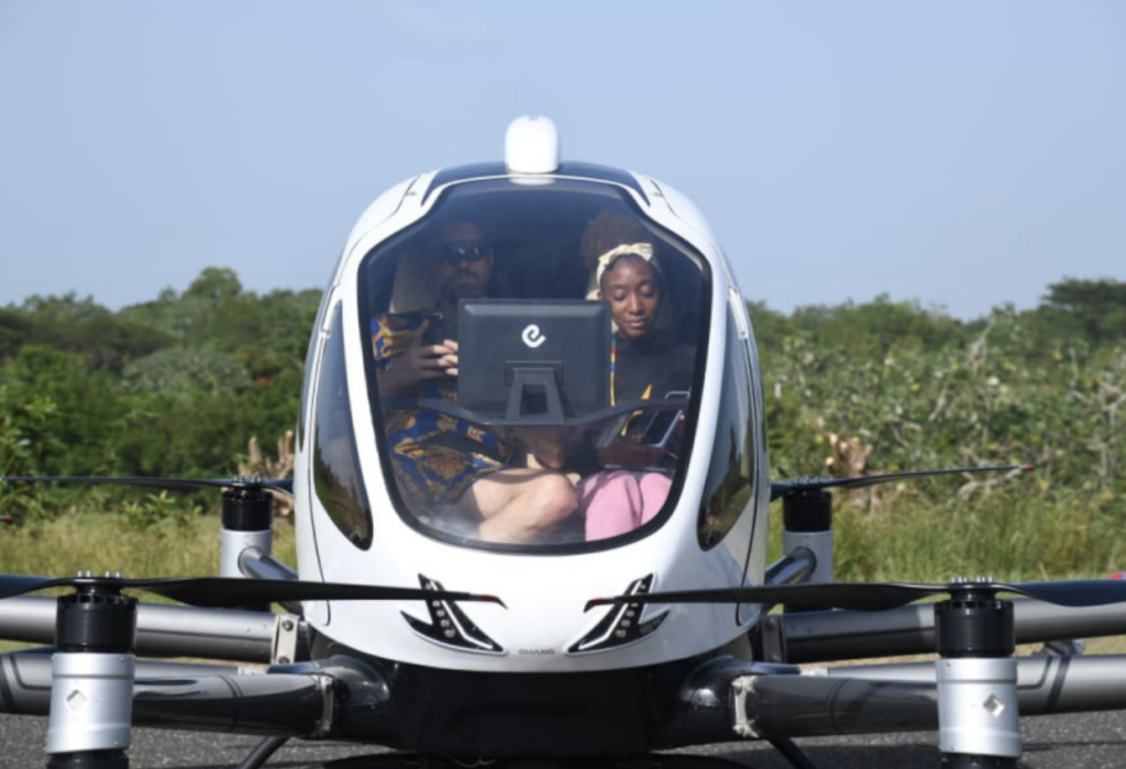 Eddy Matos, Pilot des Flugtaxis, erklärte, dass die Drohnen mit elektrischer Energie betrieben werden und daher nicht mit Flüssiggas versorgt werden müssen.